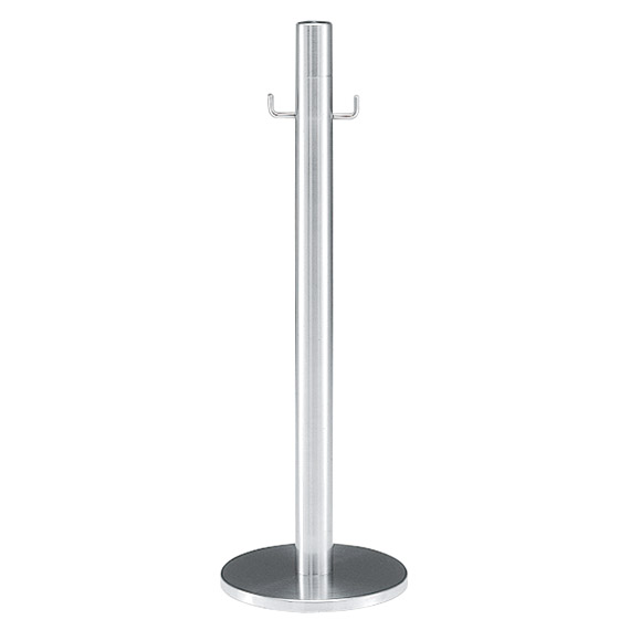 別売のパーティションロープと組み合わせて使うパーティションスタンド。ステンレスヘアライン仕上。