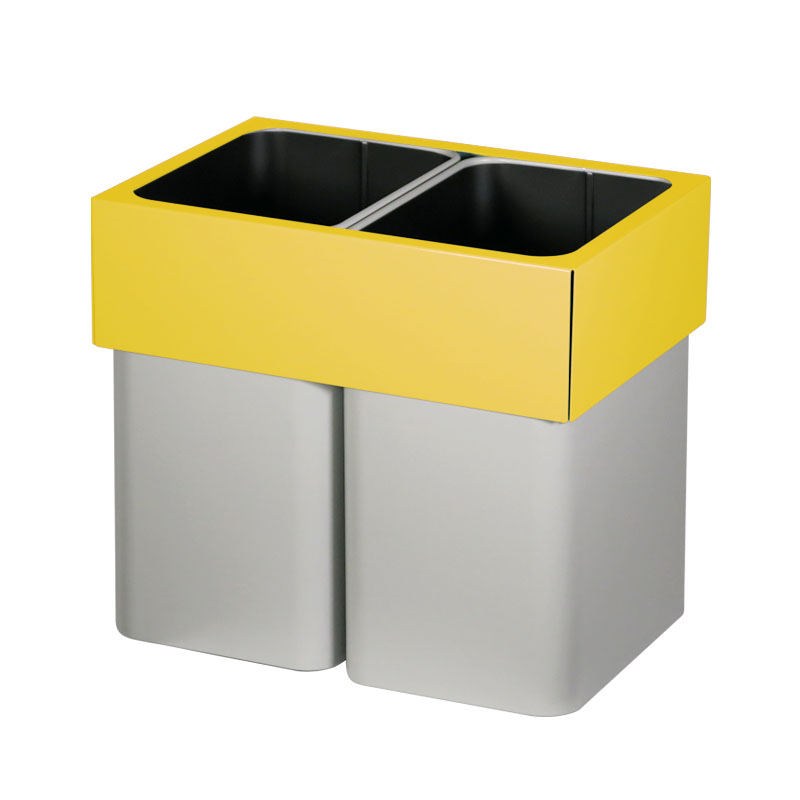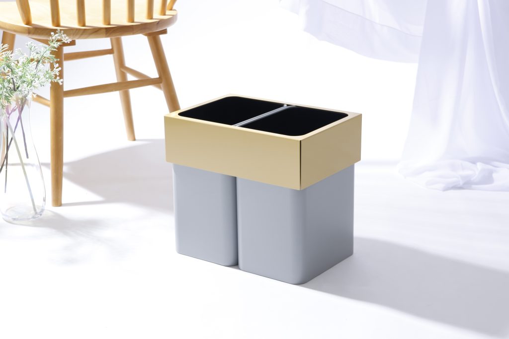 スチール製のスクエアバケット2つに蓋を組み合わせており、2分別できます。